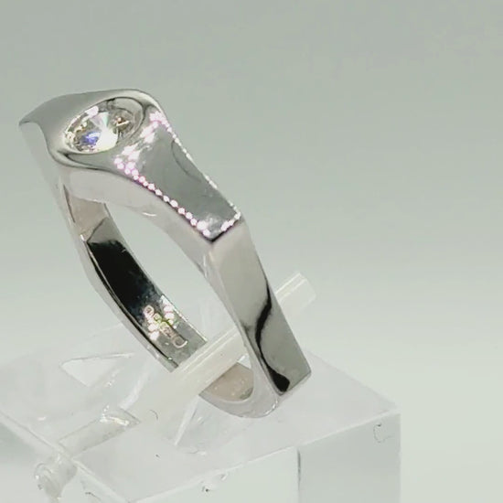 Discover sleek sophistication with this modern 18ct white gold diamond ring. A dazzling round brilliant-cut diamond is securely flush-set directly into the ring top, creating a smooth and uninterrupted surface.