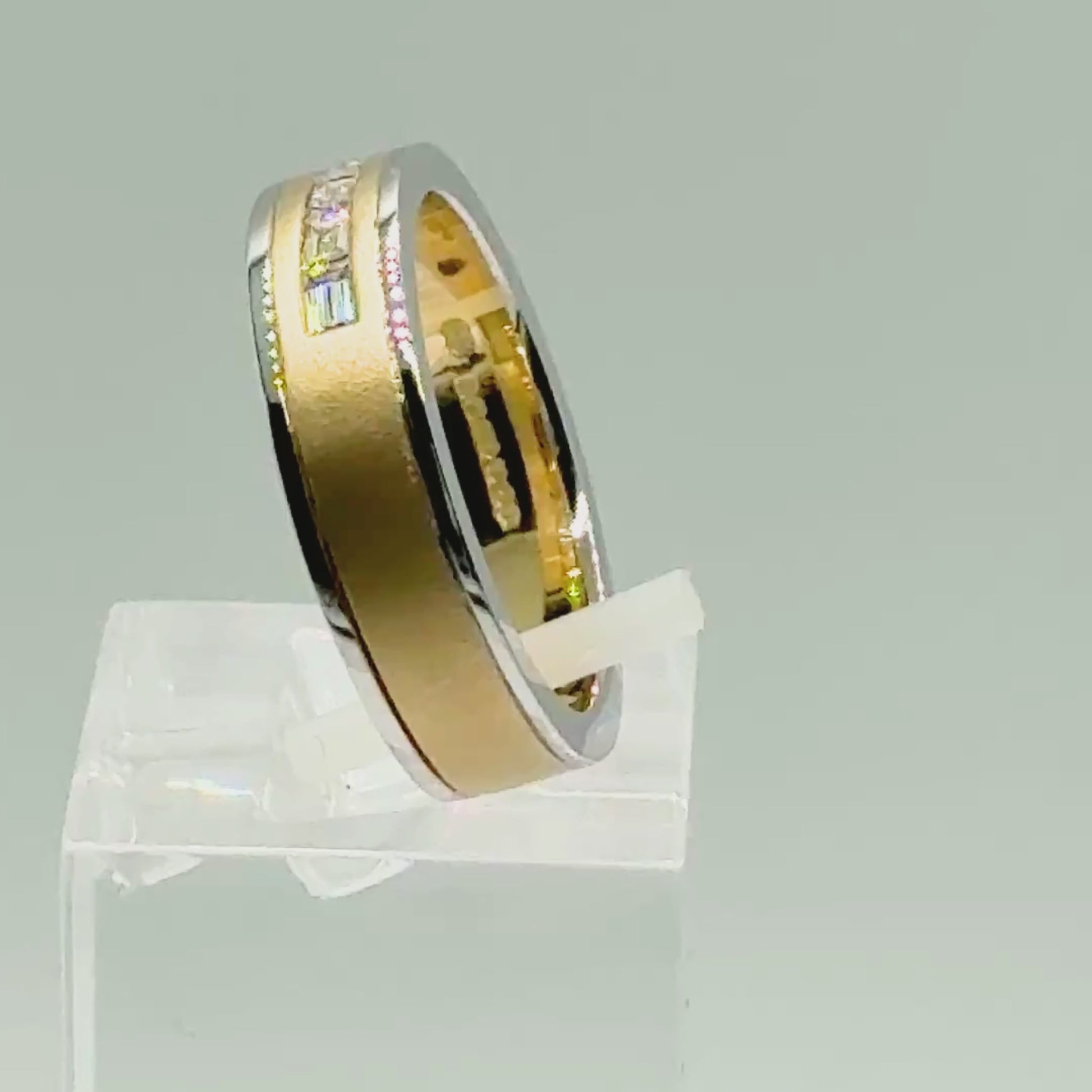 18ct Yellow & White Gold Flat Band Ring With Five Baguette-Cut Diamonds