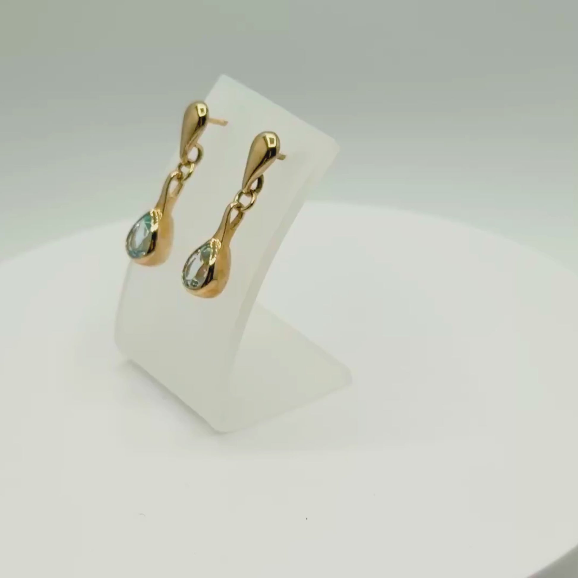 9ct Yellow Gold & Blue Topaz Drop Earrings