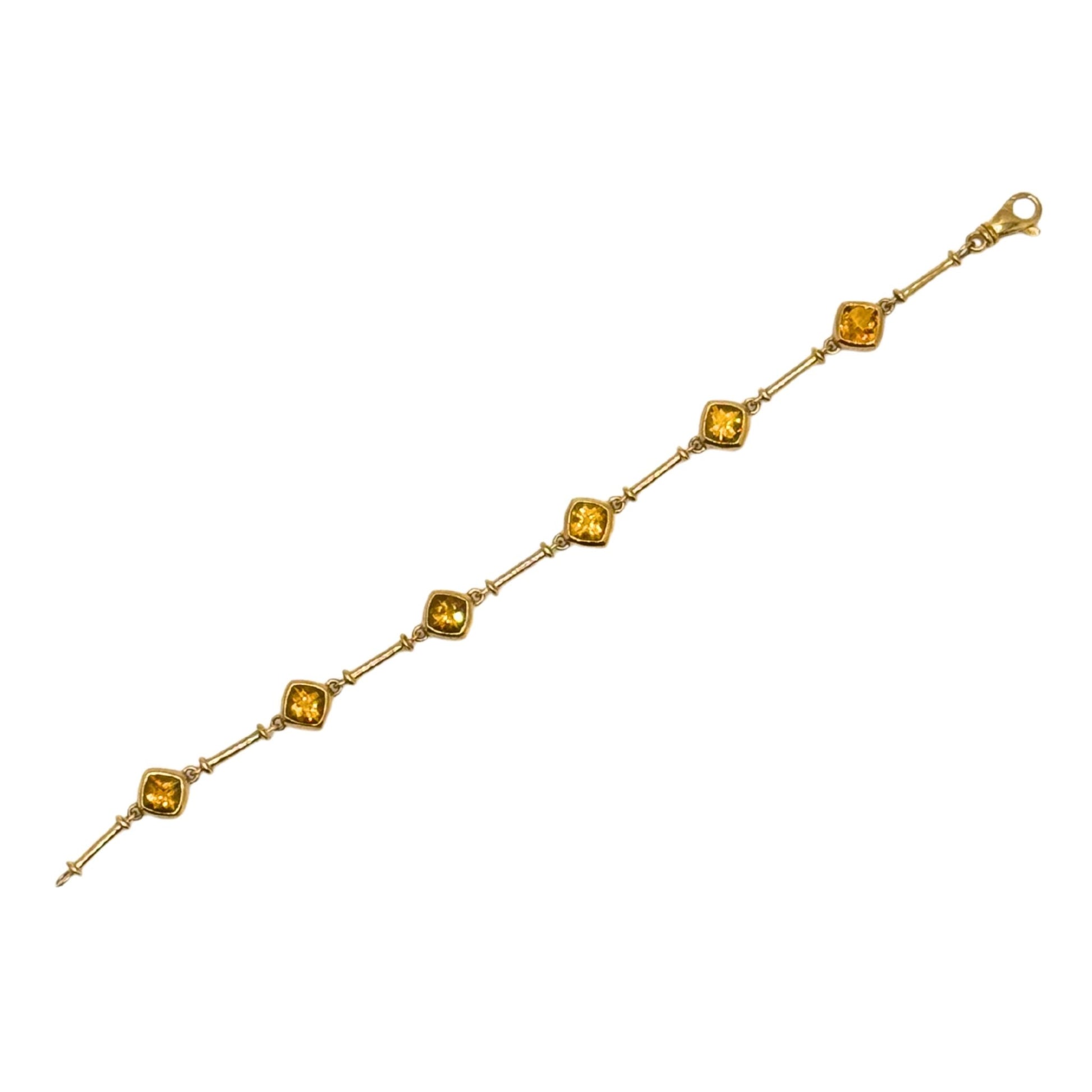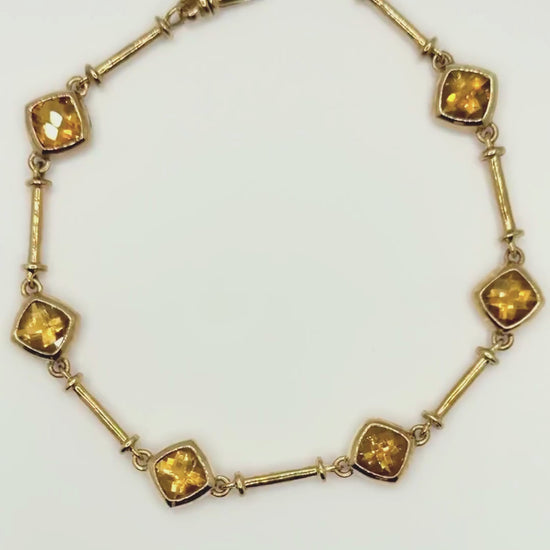 Stunning 9-carat yellow gold bracelet featuring bar-linked design with beautiful citrine stones. Each link is carefully crafted to offer a timeless and elegant look.