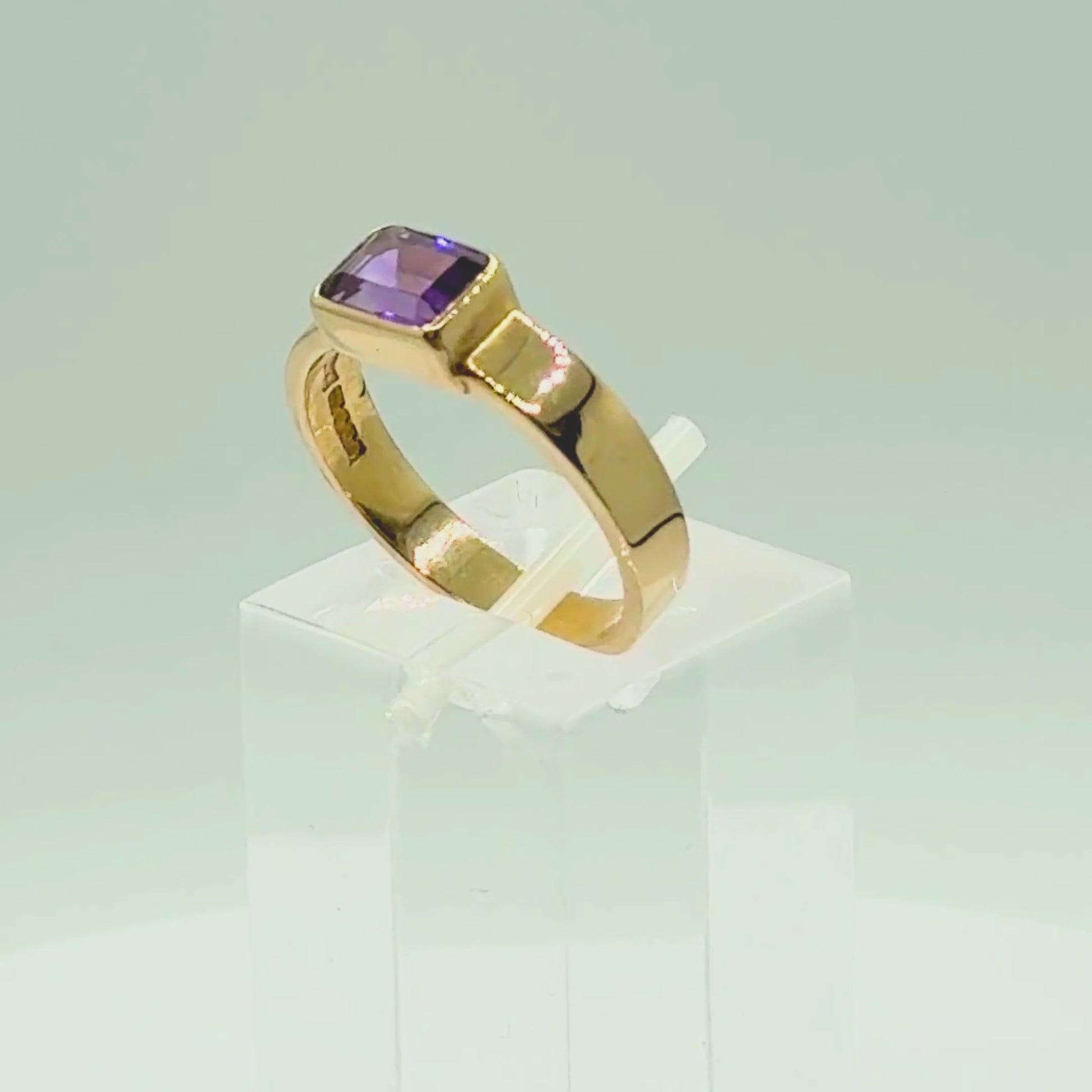 9ct Yellow Gold & Faceted Oblong Amethyst Dress Ring