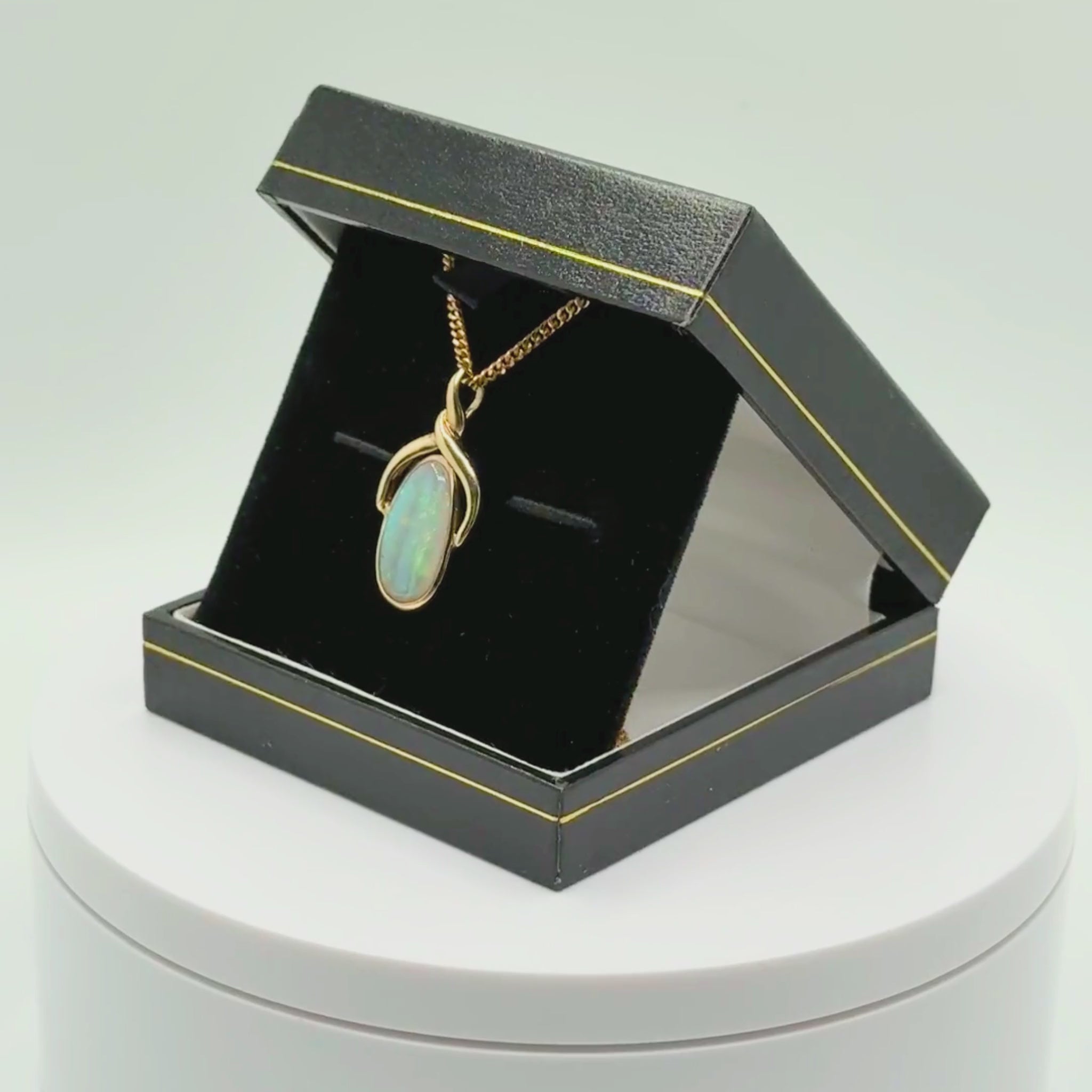 Adorn your neckline with this captivating opal set pendant, crafted in warm 9ct yellow gold. The centrepiece is a stunning oval-shaped opal (approx. 16mm x 8mm), renowned for its mesmerising play of colour.