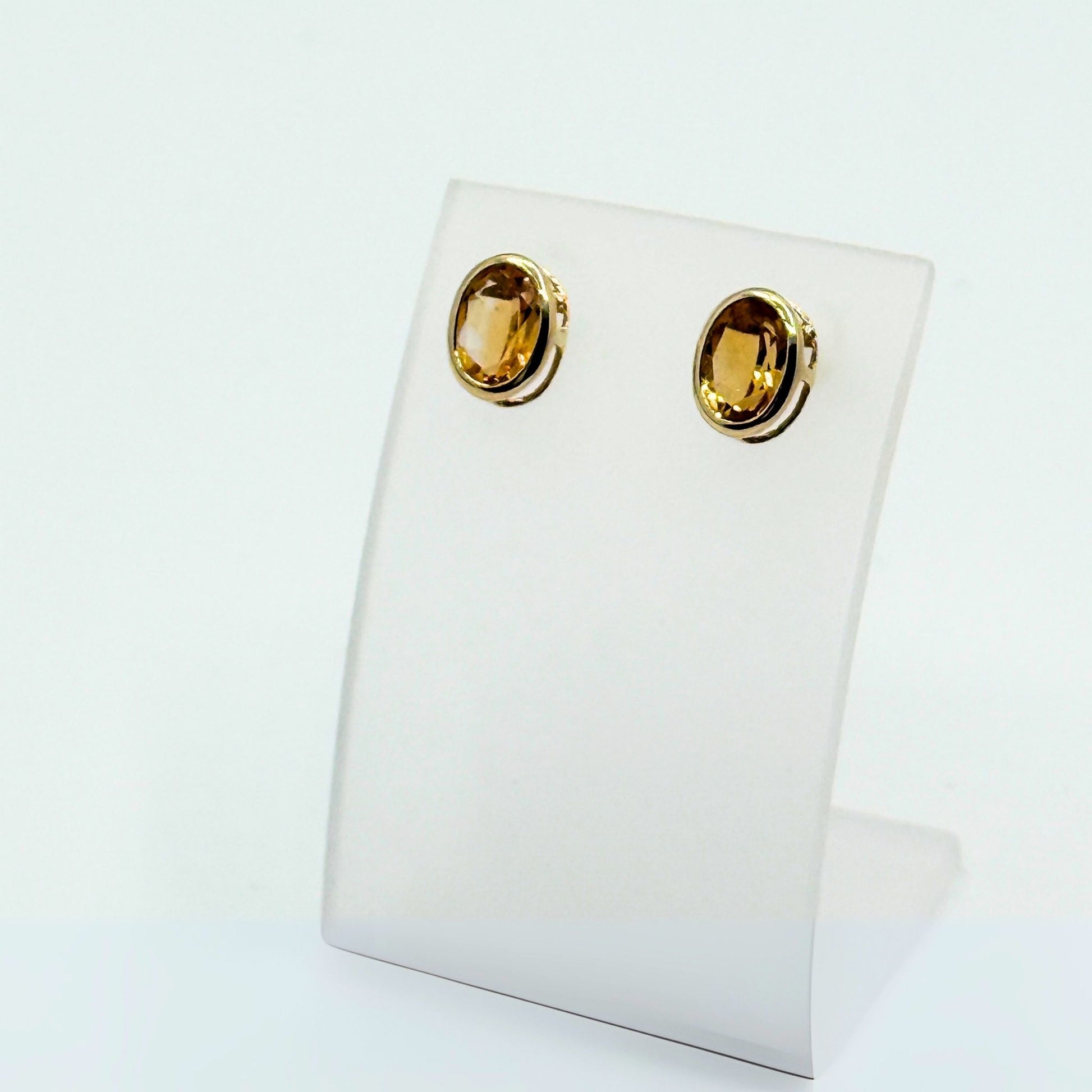 9ct Yellow Gold & Oval-Shaped Citrine Stud Earrings